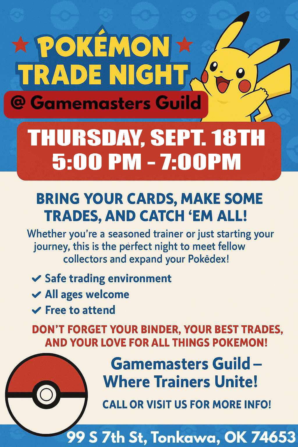 Gamemasters Guild's goal is to provide the community with accessible materials and tools to enhance the experience and fun of tabletop games.The store is located at 99 S. 7th St. in Tonkawa, OK and sells a variety of RPGs (Role-playing games) including Dungeons & Dragons, Call of Cthulhu, War Hammer 40K, among others.We have multiple card games available including Magic the Gathering, Pokemon, Star Wars: Unlimited and Riftbound.Gamemasters Guild offers events such as D&D Adventures League as well has table top miniature games such as Warhammer, Star Wars Legion and Shatterpoint.